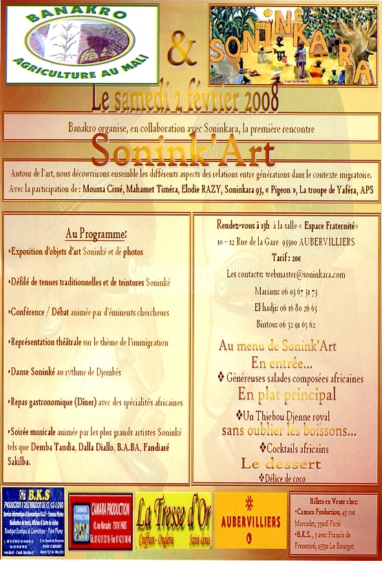 Banakro Agriculture au Mali a organisé le samedi 2 Février dernier à l’espace fraternité une journée culturelle dénommé "Sonink’Art" en partenariat avec Soninkara.com www.soninkara.com.