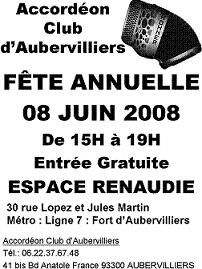 – L’Accordéon Club d’Aubervilliers organise sa fête annuelle "Du celtique irlandais...au tango argentin" dimanche 22 mai 2016 de 15h à 18h.