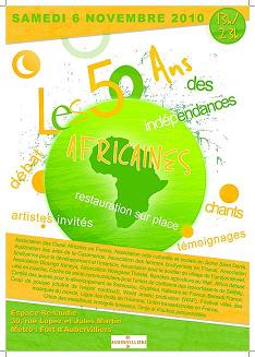 – Célébration du 50ème anniversaire des indépendances d’Afrique. Pour cela un collectif d’association ont travaillé à une journée d’échange et de découvertes des cultures qui a eu lieu le samedi 6 novembre (à l’Espace Renaudie).