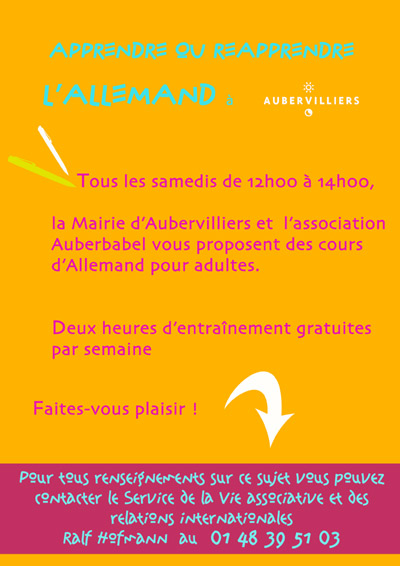 Prochaine réunion d’information sur les cours d’allemand, le samedi 3 octobre, à 10h, au Bureau des associations et des relations internationales.