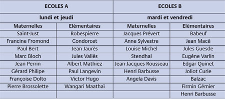 maternelles et les élémentaires de la liste A.