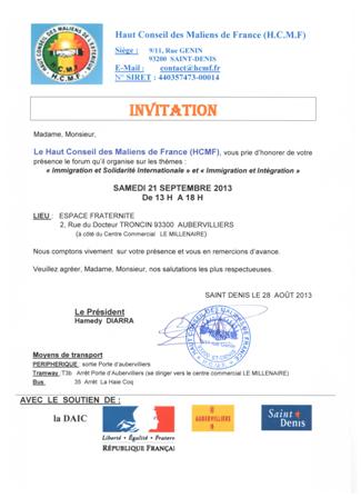 Le Haut Conseil des Maliens en France vous invite à leur forum, le samedi 21 septembre 2013, sur le thème :