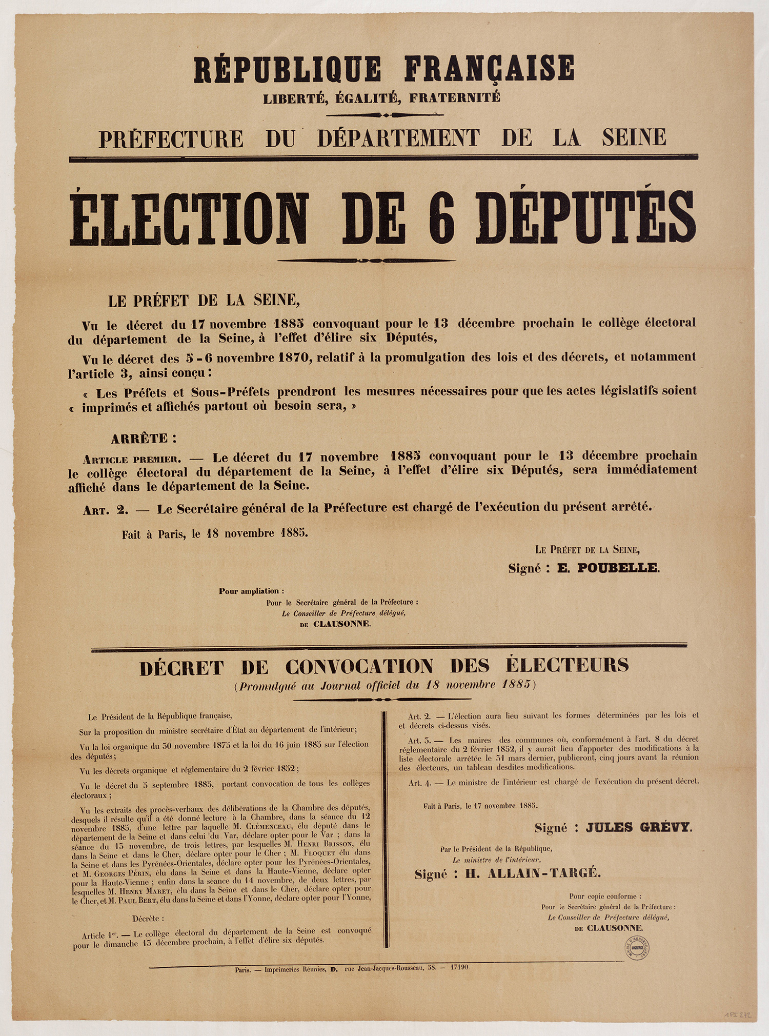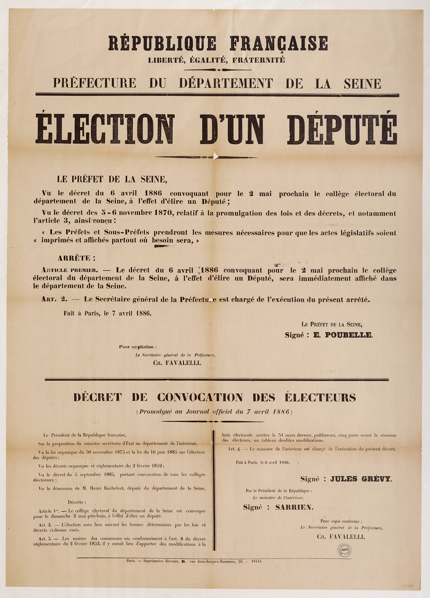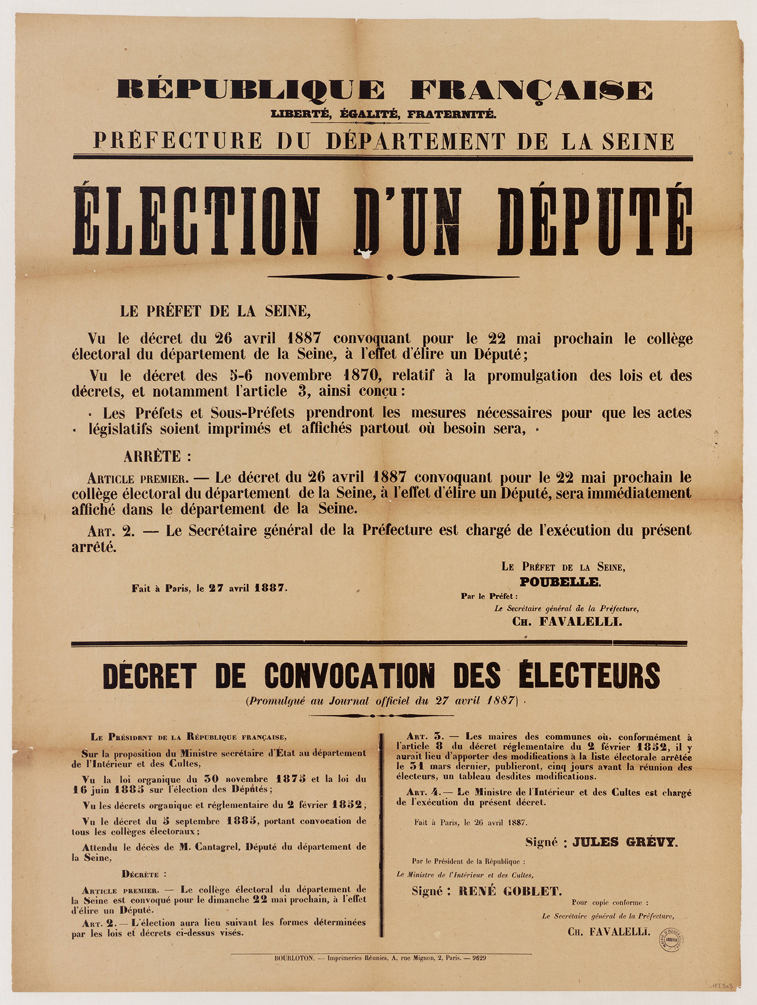 - 1Fi0177 - Publication de décret qui homologue les plans de circonscription, 1880. (format jpg - 966.8 kio - 13/07/2016)