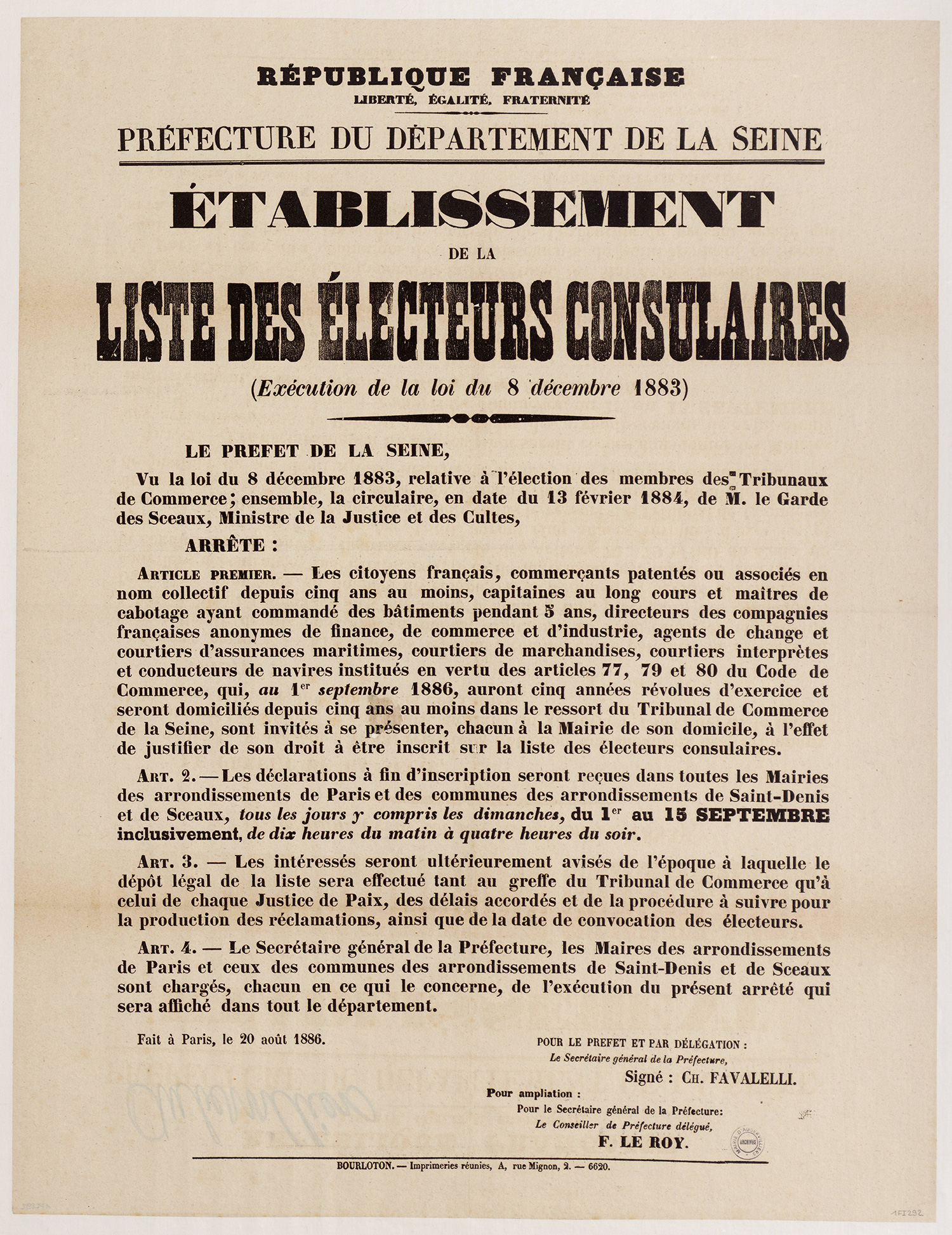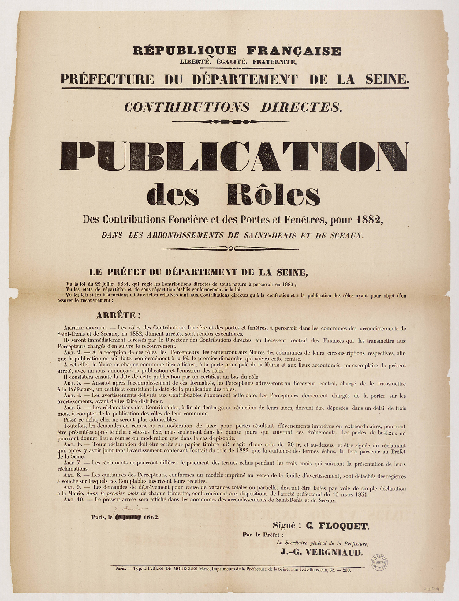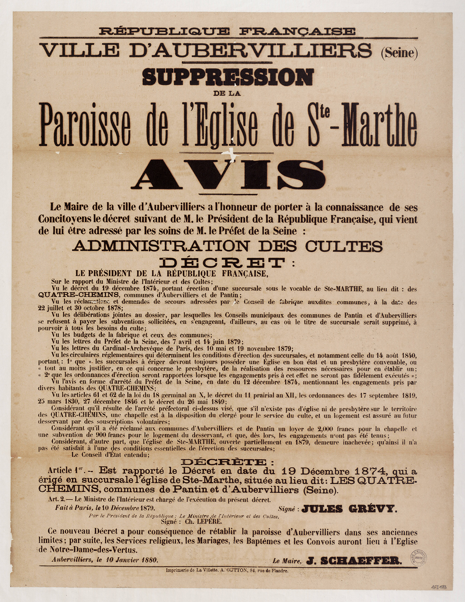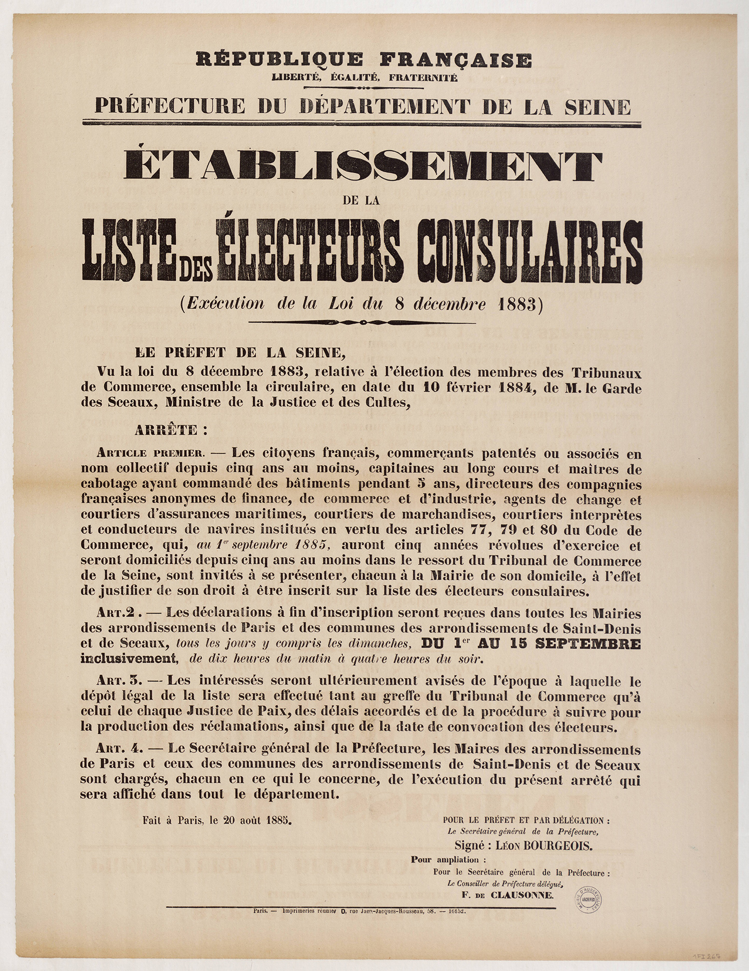 - 1Fi0177 - Publication de décret qui homologue les plans de circonscription, 1880. (format jpg - 966.8 kio - 13/07/2016)
