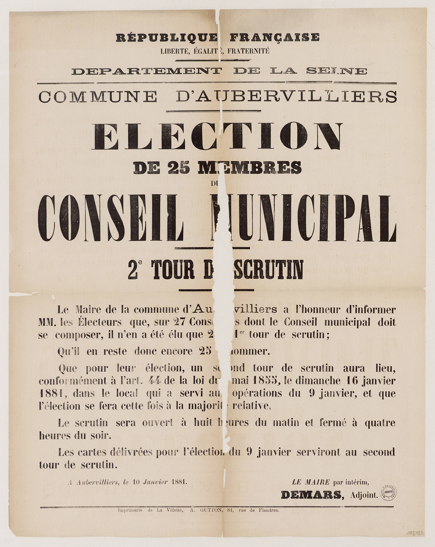 Aubervilliers-Archives municipales - 1Fi0224 - Renouvellement de la 2eme série sortante des conseils d’arrondissement, 1883 (format jpg - 1.2 Mio - 13/07/2016)
