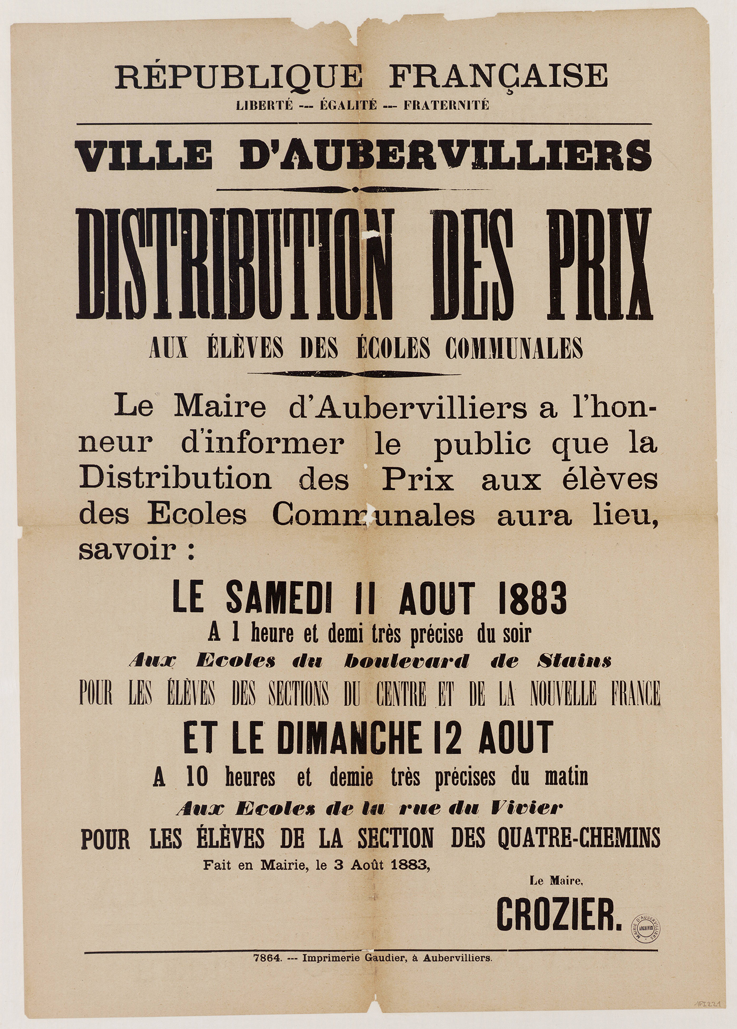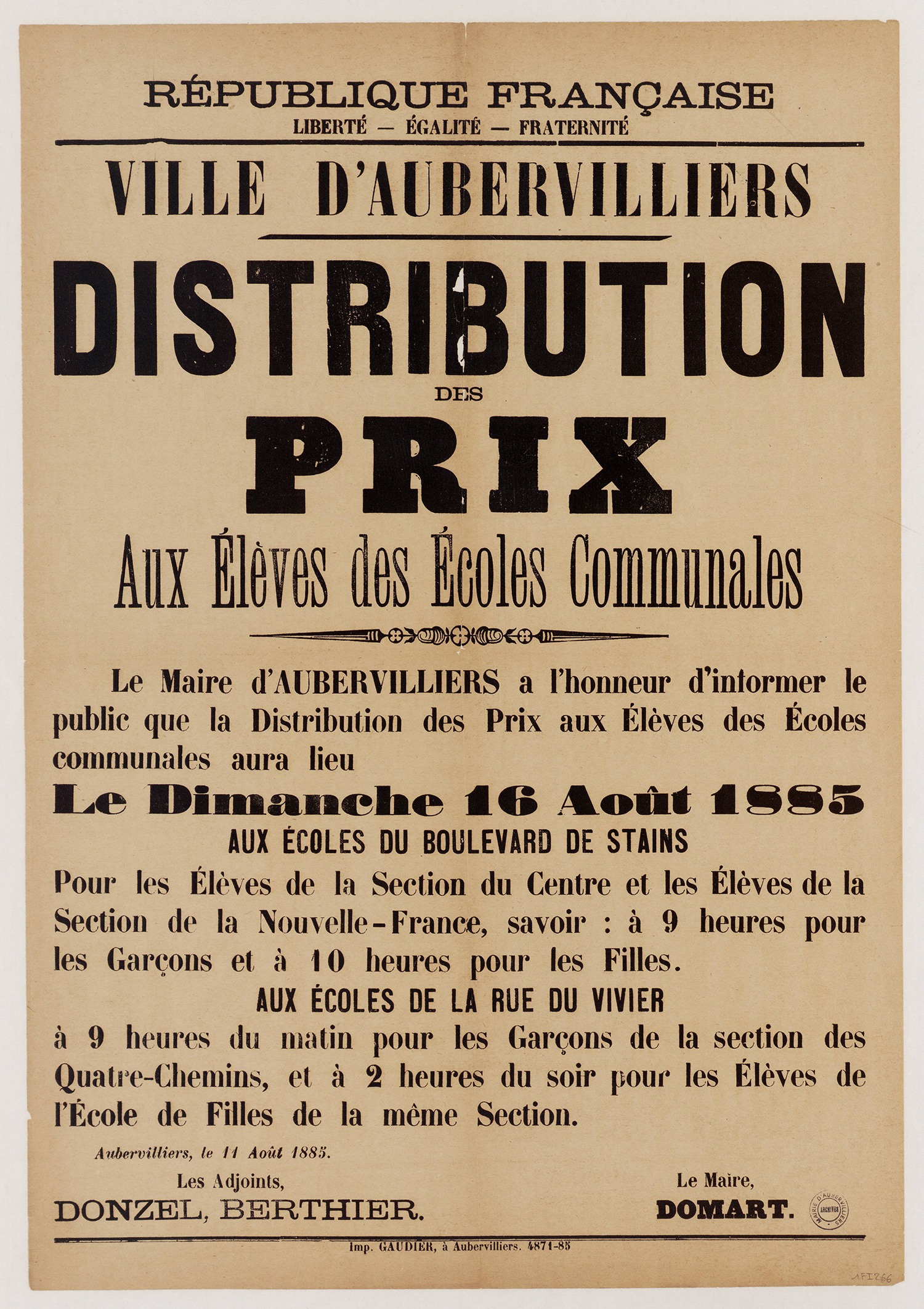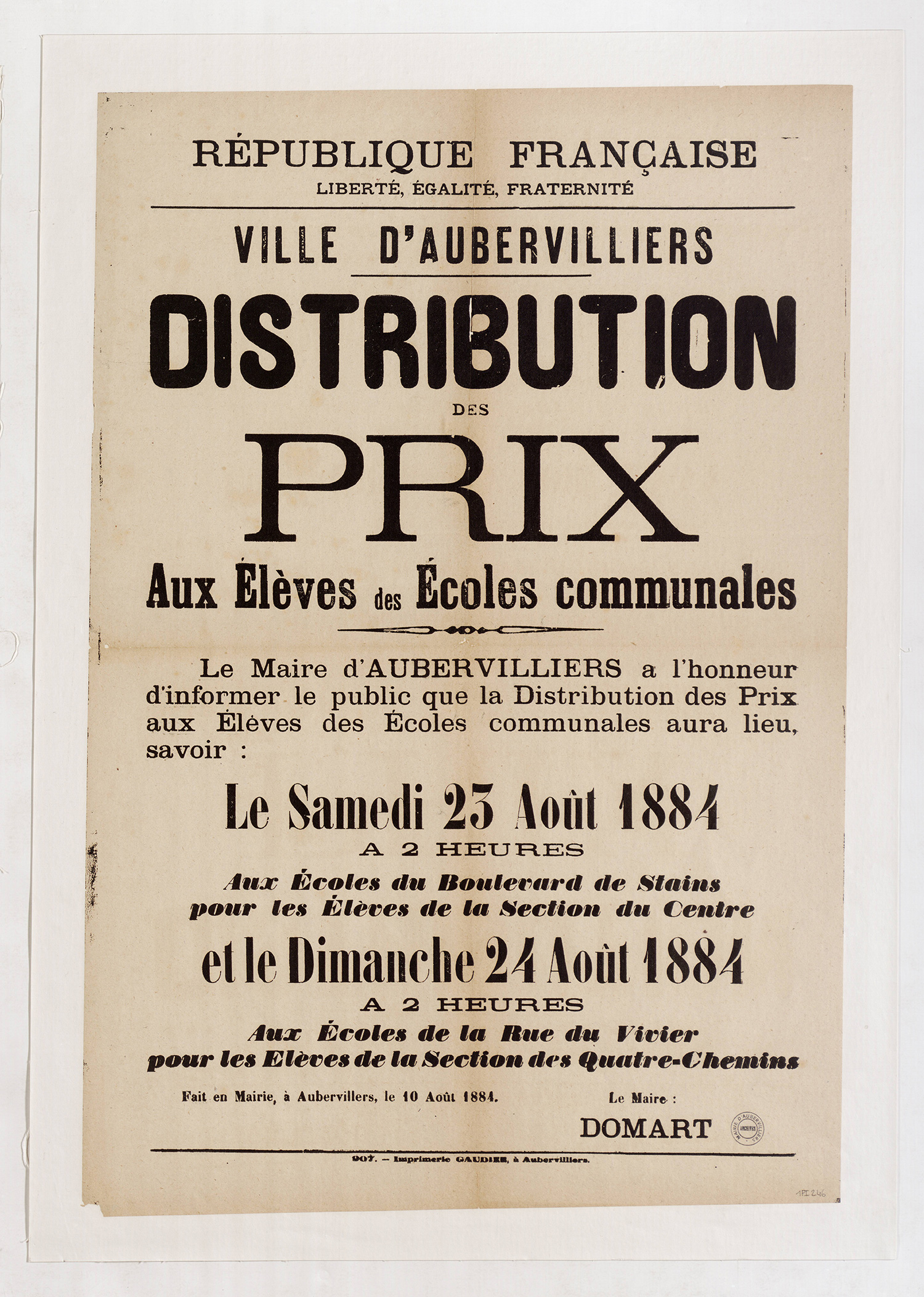 Aubervilliers-Archives municipales - 1Fi0246 - Distribution des prix, 1884. (format jpg - 1.5 Mio - 13/07/2016)