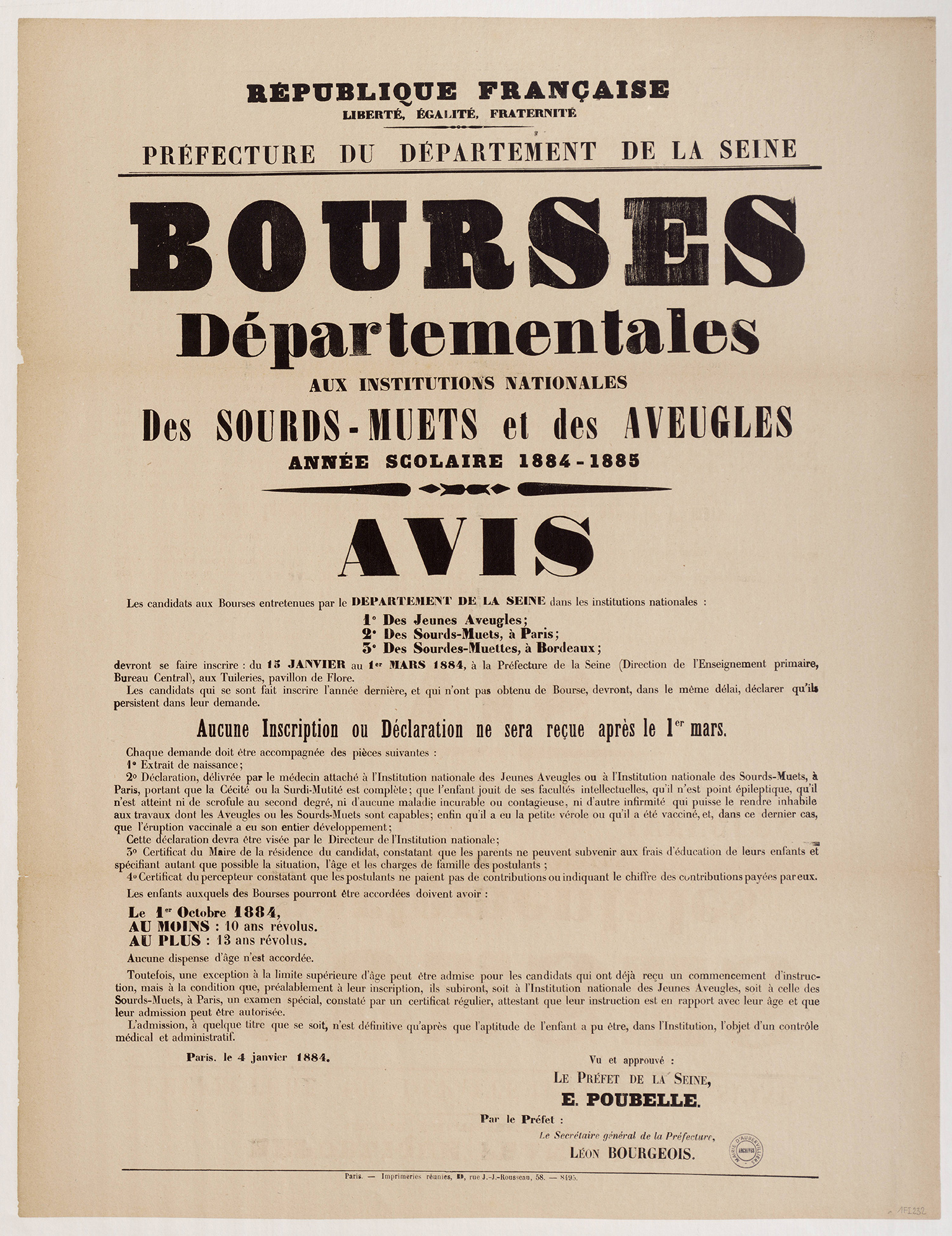 - 1Fi0232 - Bourses départementales aux institutions nationales (sourds-muets et aveugles), 1884. (format jpg - 639.5 kio - 13/07/2016)